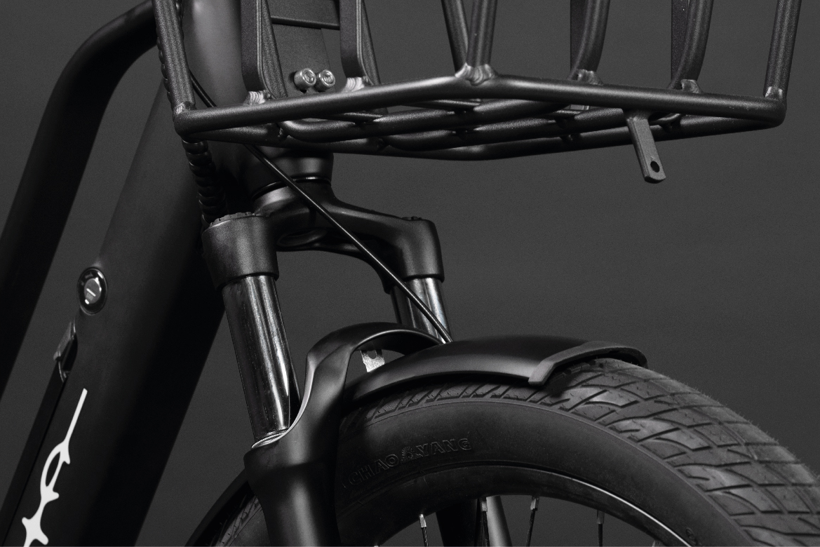 - Sicherer Korb mit großem Volumen und stabiler Gepäckträger